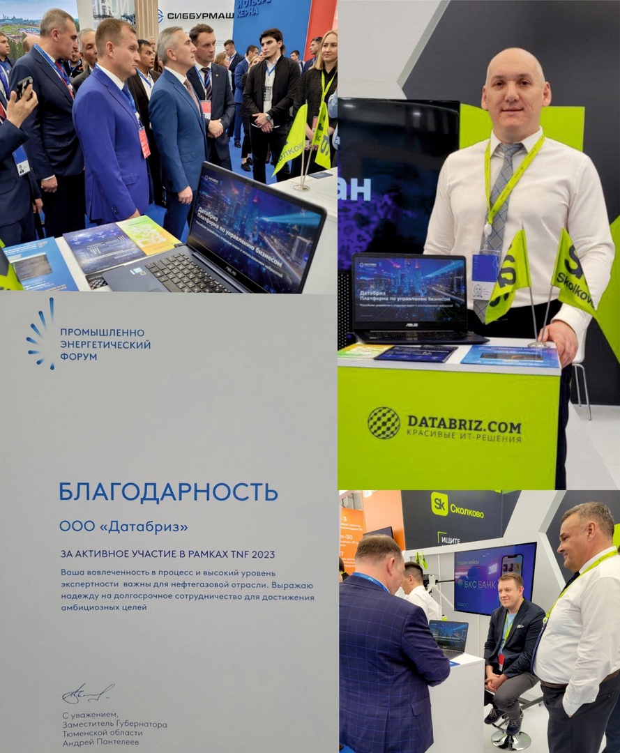 «Наш продукт показал свою эффективность во многих отраслях экономики. Не исключение и нефтегазовая отрасль. Внедрение Платформы позволяет оптимизировать управление инвестиционными проектами компаний–клиентов, и в частности, повысить эффективность остановочных ремонтов на предприятиях. Мы рады присутствовать на форуме, надеемся, что форум даст старт новым проектам между Датабриз и компаниями нефтегазовой отрасли. Благодарим Сколково за предоставленную площадку для демонстрации наших разработок» — передает коммерческий директор Датабриз Илья Ермолов со стенда Сколково.