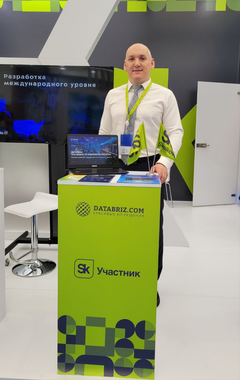 Датабриз представлена на объединенном стенде резидентов Сколково и презентует посетителям свои разработки, в том числе Платформу по управлению инвестиционными проектами и остановочными ремонтами, включенную в реестр Российского ПО.