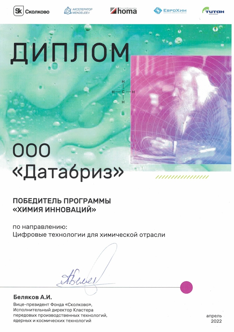ООО «Датабриз» — победитель программы «Химия инноваций» по направлению «Цифровые технологии для химической отрасли»!